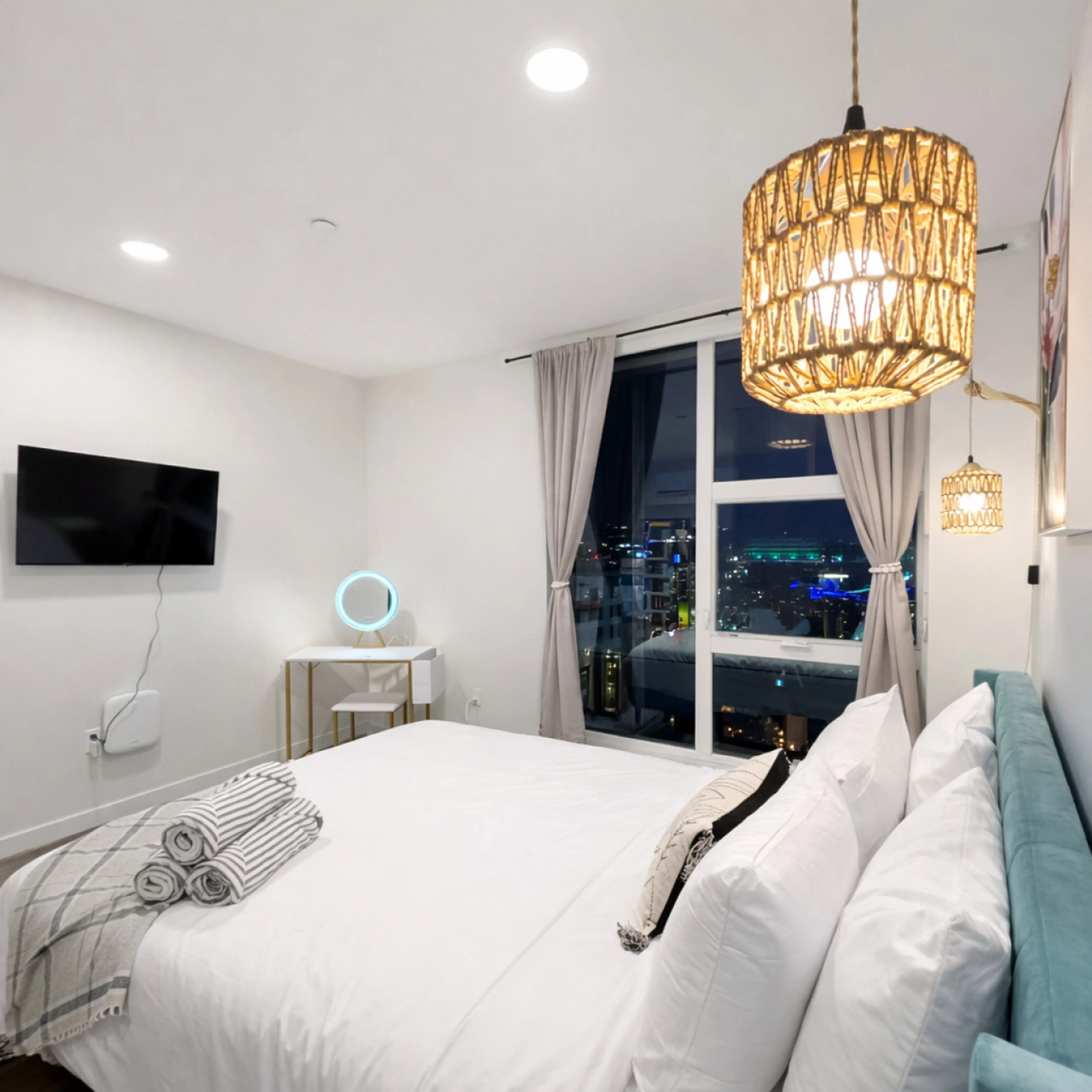 Stay in luxury at this stylish 2-bedroom, 2-bath retreat in the heart of downtown. Comfortably sleeps 6 with plush beds plus a queen air mattress. Enjoy a fully furnished open-concept kitchen, high-speed WiFi, and smart TVs in the living room and bedrooms. Prime location, gated parking, EV charging,...